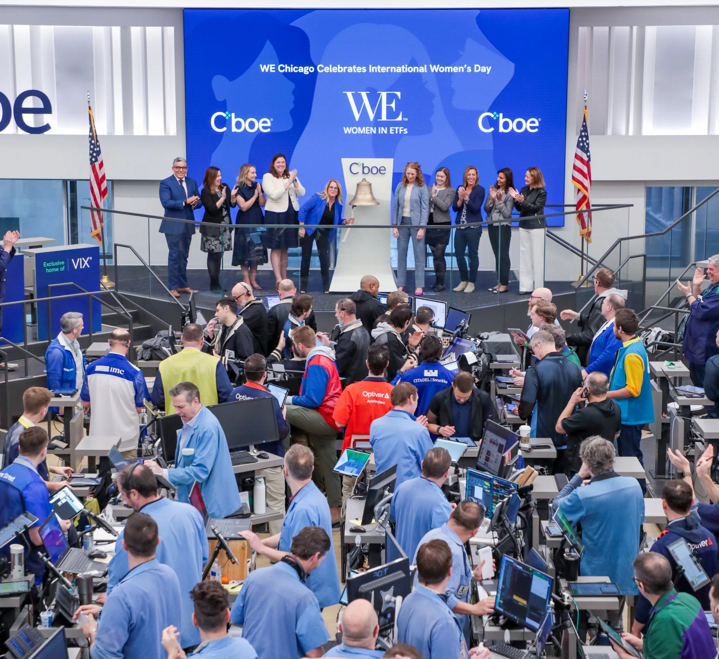 I had the incredible honor of ringing the opening bell at Cboe Global Markets in celebration of International Women’s Day. The tradition of the opening bell signals the start of the trading day for financial markets, and Cboe facilitates nearly 20 million options contracts trades every day[1], making it one of the most active derivatives marketplaces in the world.
